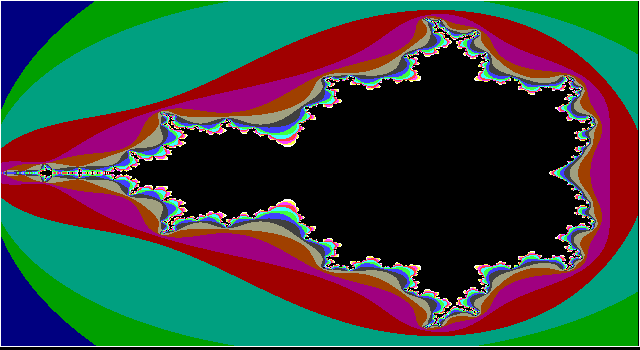 6 - Sistemas Dinâmicos Estável ou Instaveis -> São os que tem órbitas estáveis ou instáveis respectivamnete. O conjunto de pontos cujas órbitas são instáveis são chamadas de Conjuntos Caóticos. Fractais são conjuntos caóticos dos sistemas dinâmicos, por exemplo os conjuntos de Julia de Mandelbrot são figuras geradas pelas orbitas caóticas de um sistema dinamico. Os conjuntos de Julia estão estritamente conectados ao conjuntos de Mandelbrot. Esses conjunto são o resultado da iterações do sistema definido pela função: { cx = x * xscale + left e cy = y * yscale + top } onde x e y representamas partes real e imagináriade um n